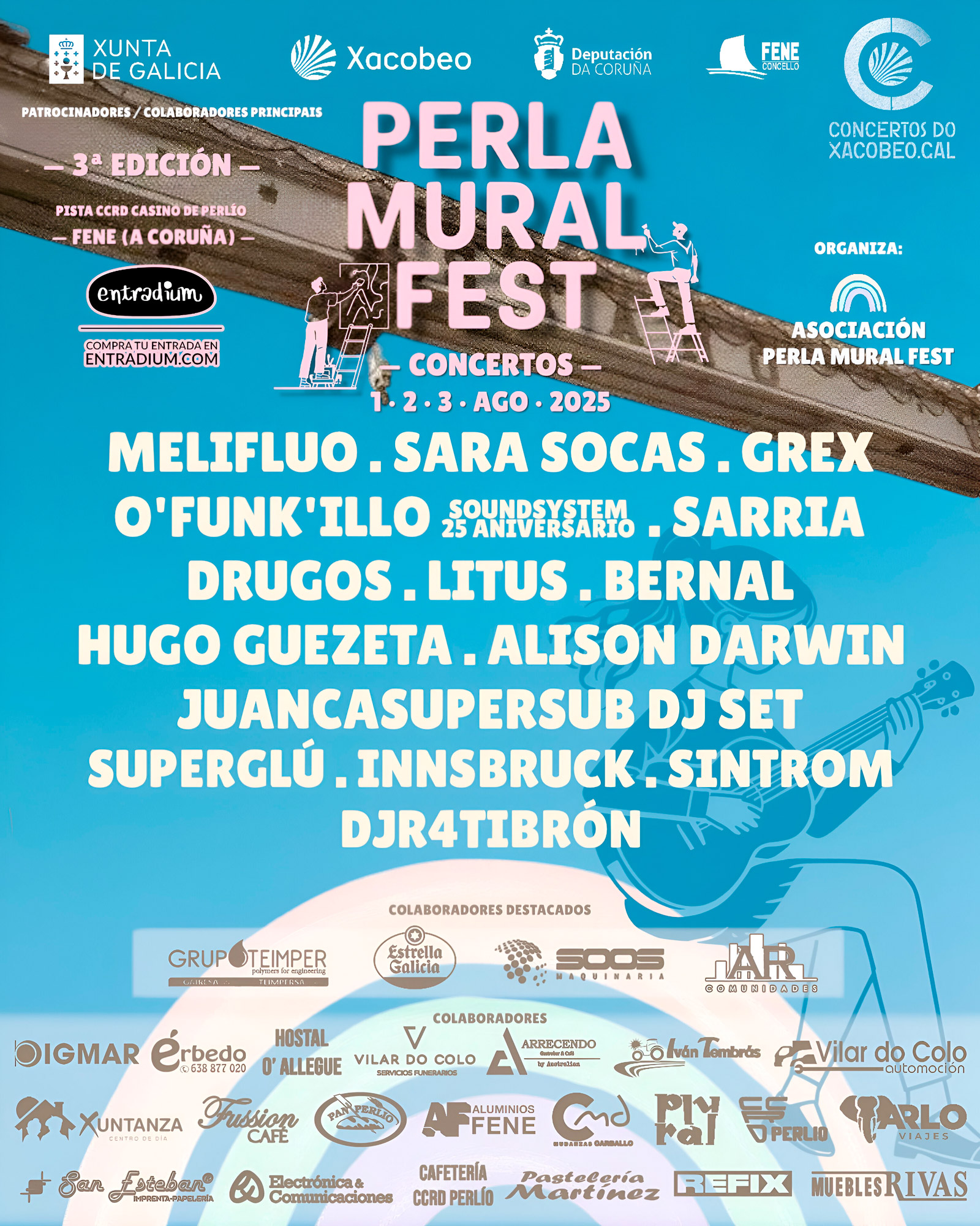 O Perla Mural fest é un festival de muralismo, música e artes urbanas que regresa neste 205 para celebrar a súa terceira edición. É un festival que ten lugar no municipio de Fene, situado na provincia de A Coruña, Galicia. “O Perla” está dedicado ao muralismo, as artes urbanas, e a música, co obxectivo de honrar á antiga sala Perla que se encontraba na mesma localidade e foi demolida hai varios anos. O festival busca embelecer a localidade, evitando o feísmo e fomentando a creatividade e a participación artística tanto de artistas profesionais como de afeccionados e nenos. Na primeira edición, un dos murais realizados foi galardoado como o “Mellor Mural do Mundo” do 2023. Este recoñecemento internacional é unha testemuña do impacto positivo que o noso festival ten tanto a nivel local como global, o cal fixo que o festival fose reseñado en numerosos medios de comunicación sobre turismo nacional e internacional, ademais de en múltiples informativos e programas de televisión.