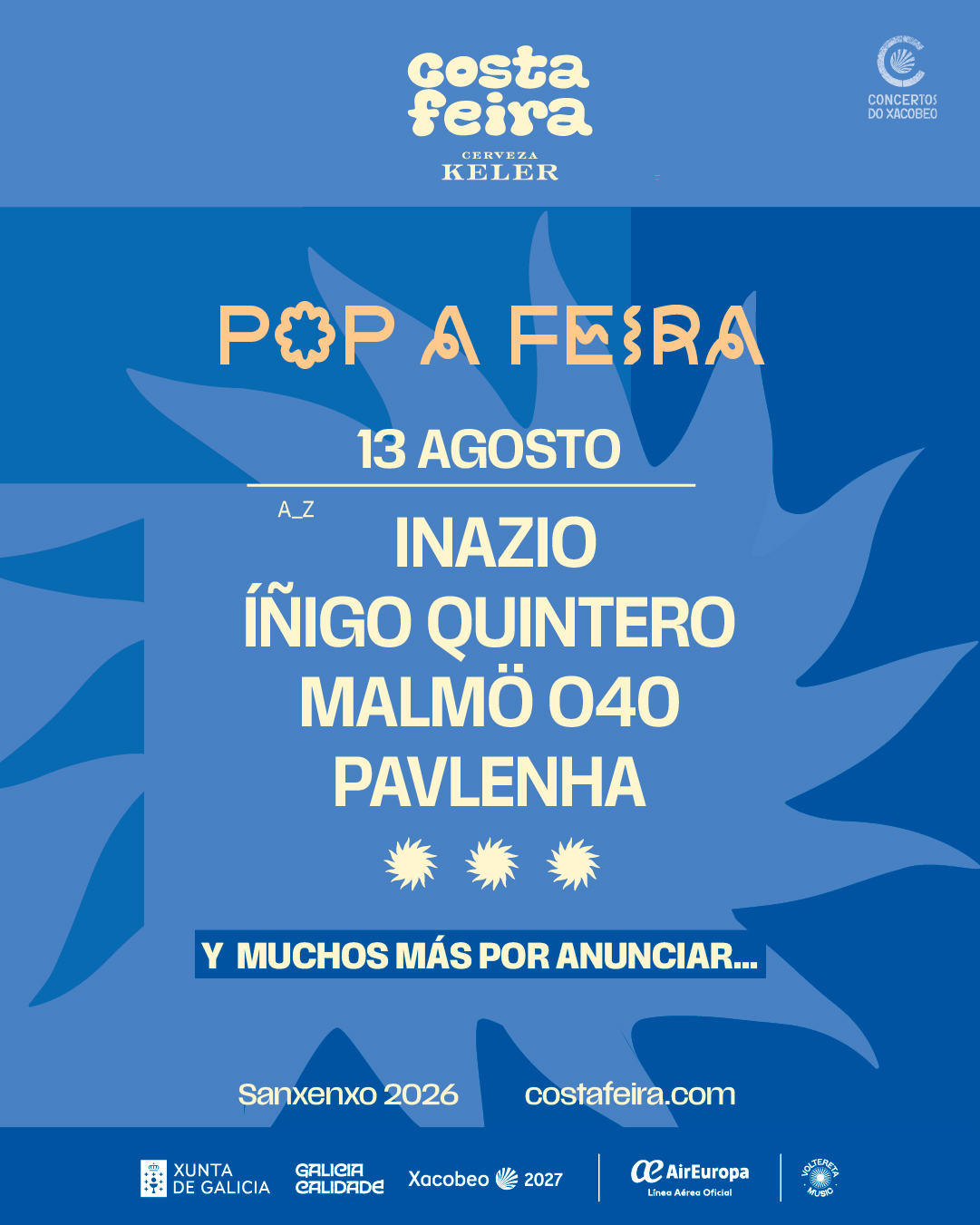 Costa Feira dedica el 13 de agosto al género pop con artistas que arrasan entre la juventud: Inazio, Íñigo Quintero, Mälmo 040 y Pavlenha son las primeras confirmaciones de la jornada.