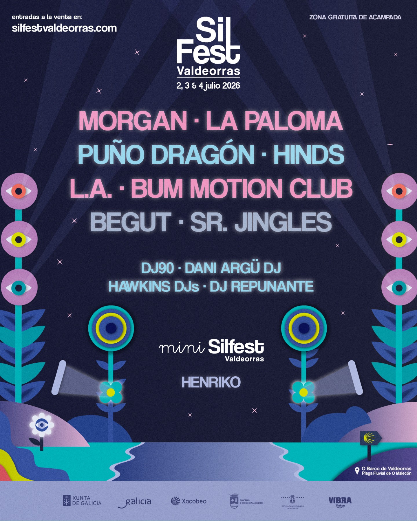 El SilFest cumple diez años y vuelve a contar con el apoyo de los Concertos do Xacobeo. A orillas del Sil, en un entorno natural precioso, el festival apuesta por un ambiente tranquilo, próximo y para todos los públicos, donde disfrutar de la música en directo, la gastronomía y el vino de Valdeorras, así como de actividades culturales y deportivas. En esta décima edición, destacan en el cartel Morgan, Hinds, La Paloma, Puño Dragón, L.A. y Bum Motion Club.