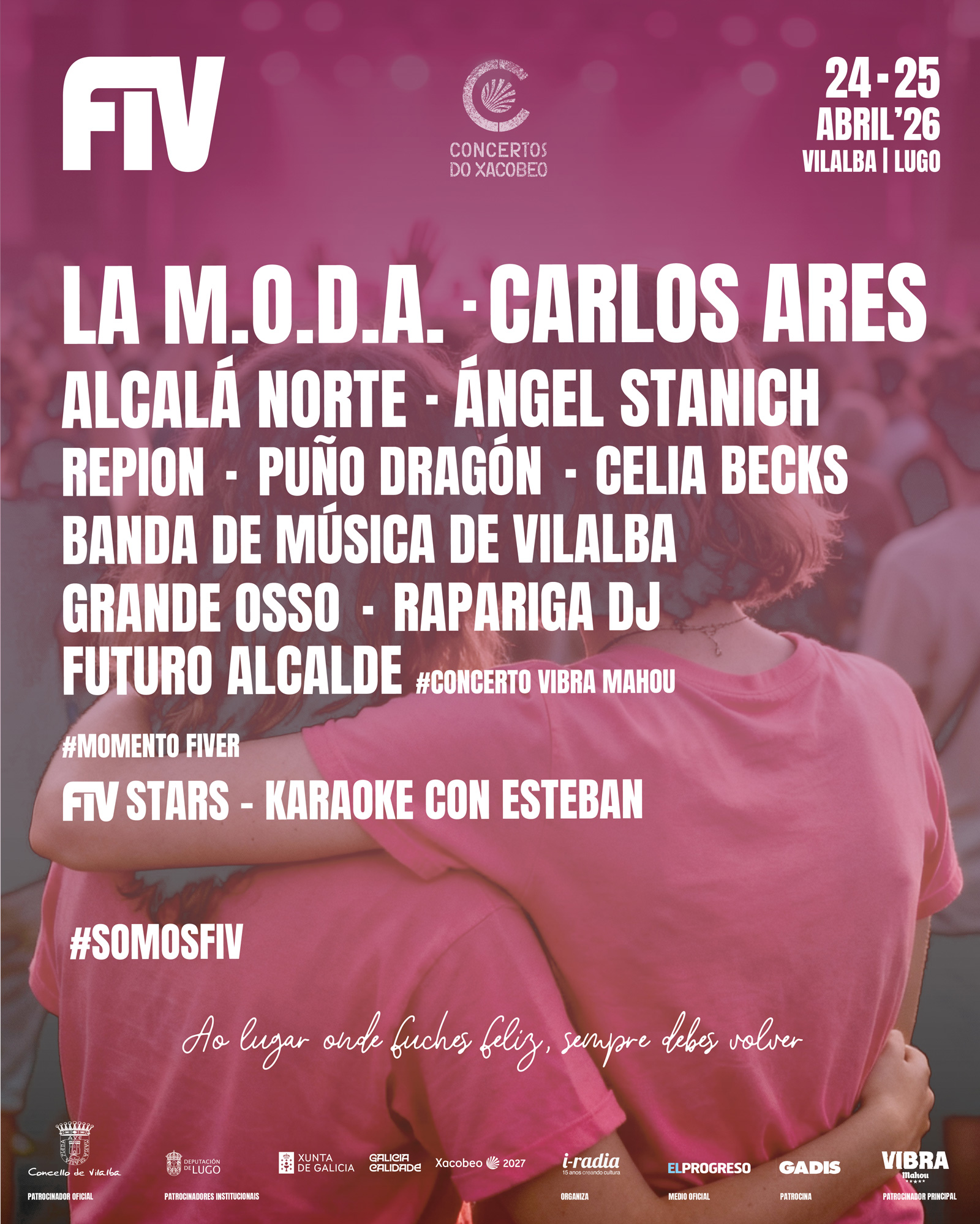 Con case 20 anos de historia, o FIV de Vilalba continúa ofrecendo unha proposta que mestura grandes nomes da música estatal con novas bandas, destacando tamén o talento galego. Neste 2026, o cartel trae artistas como Carlos Ares, LA M.O.D.A., Alcalá Norte, Ángel Stanich, Repion, Puño Dragón, Celia Becks e Futuro Alcalde.
