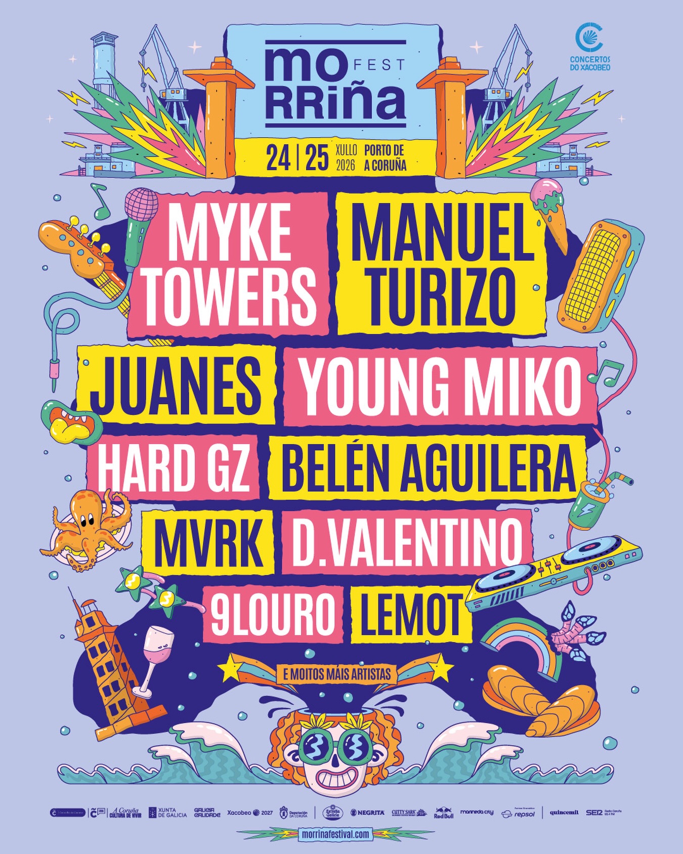 O Morriña Festival é unha das citas musicais máis relevantes da época estival na nosa comunidade, que este 2026 regresa para celebrar á súa sexta edición os días 24 e 25 de xullo. No seu cartel reúnense este ano Manuel Turizo e Young Miko, nas súas únicas datas en Galicia, xunto a Myke Towers, Juanes, Hard GZ e Belén Aguilera, entre outros.