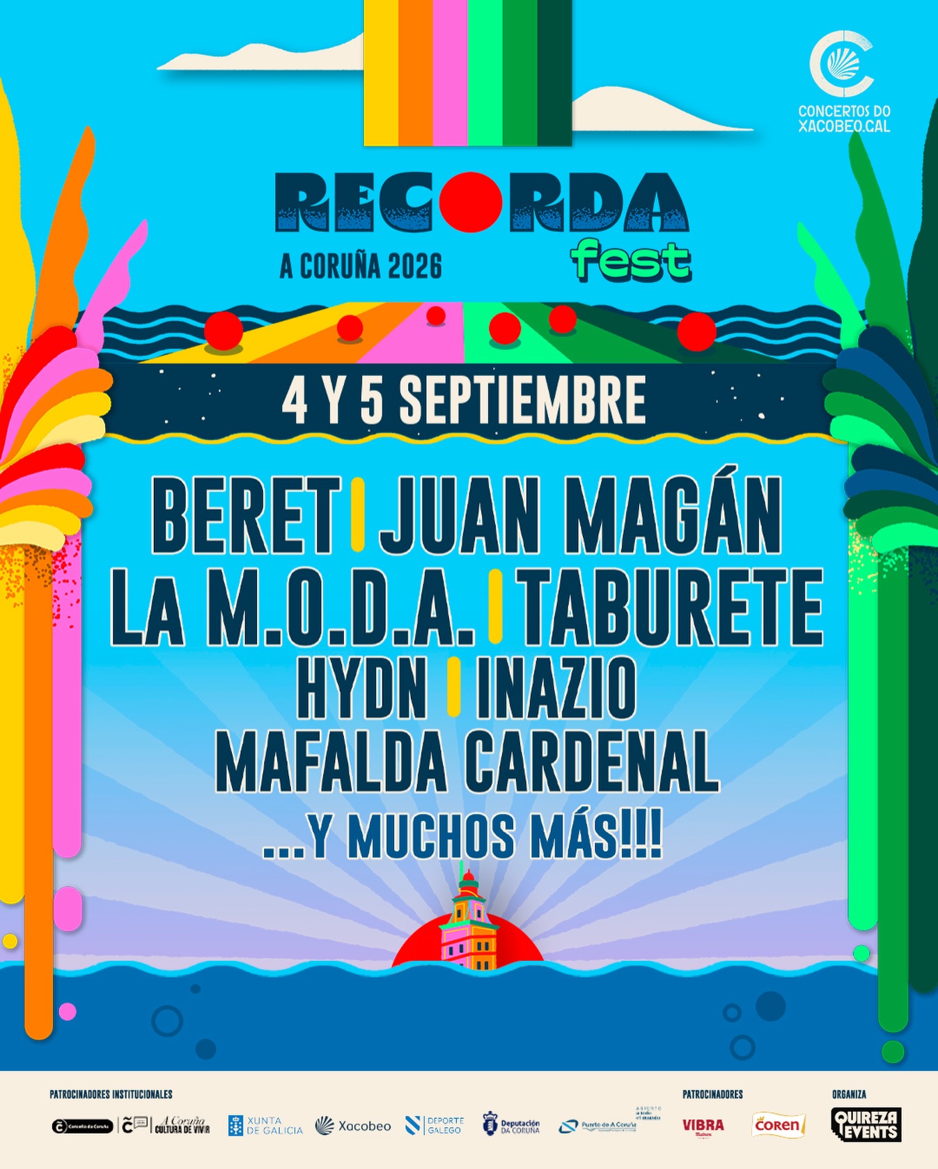 O Recorda Fest regresa este 2026 coa súa cuarta edición para vestir co mellor indie, pop e rock español o Peirao de Batería do Porto da Coruña. Co apoio dos Concertos do Xacobeo, o cartel ofrece dúas xornadas inesquecibles repletas de música con nomes xa confirmados como Beret, Juan Magán, LA M.O.D.A., Taburete, Hydn, Inazio e Mafalda Cardenal.