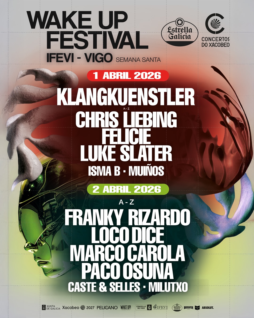 Durante dous días, o 1 e 2 de abril, o público gozará dunha combinación de artistas de primeiro nivel mundial, mestres e referentes da escena global actual. Forman o cartel Klangkuenstler, Chris Liebing, Felicie, Luke Slater, Isma B, Muíños, Franky Rizardo, Loco Dice, Marco Carola, Paco Osuna, Caste & Selles e Milutxo.